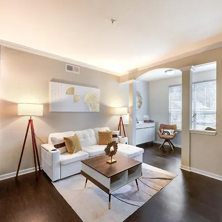 What is the check-in and check-out time at this spacious Mid-Century Gem apartment?